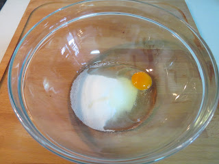 Numa taça bater bem o ovo com o açúcar.