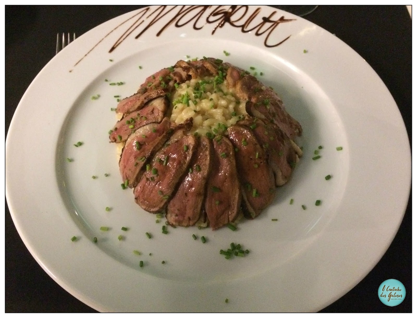 O risotto foi o Risotto Magret, um risotto com Martini