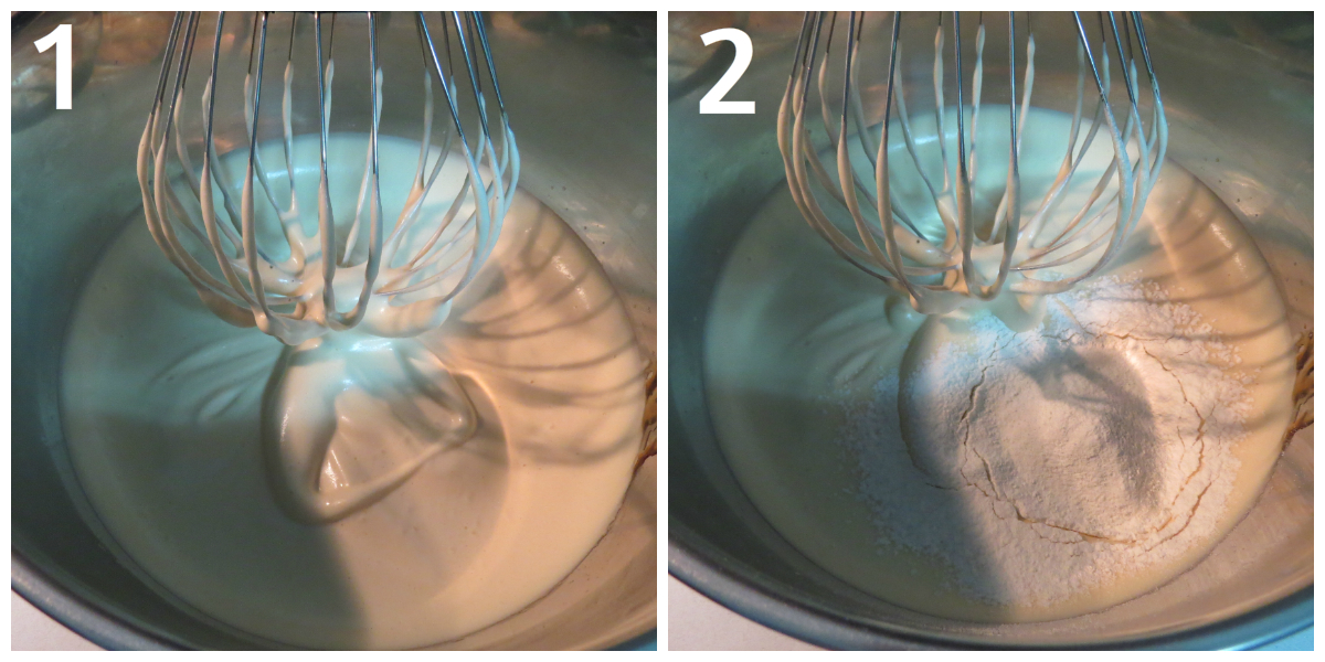 2) Colocar a farinha peneirada e mexa em