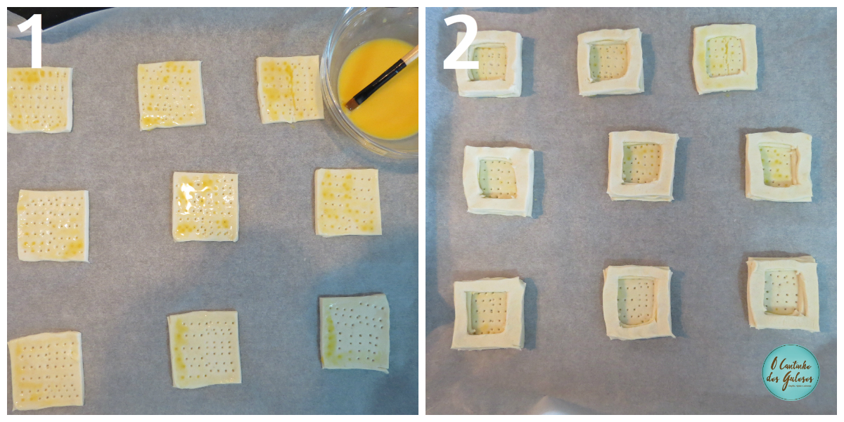 1) Corte a massa em quadrados.